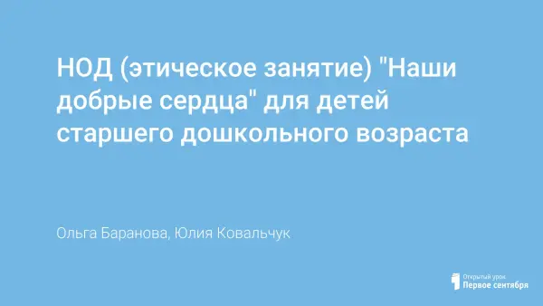 НОД (этическое занятие) "Наши добрые сердца" для детей старшего дошкольного возраста