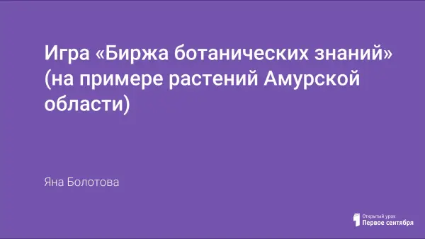 Участникам «Биржи ботанических знаний» предлагаются 88 вопросов о 50 растениях Амурской области. Возраст учащихся неограничен, количество игроков – 20–30 человек. Продолжительность игры 40–60 минут. Школьники в игровой форме знакомятся с растениями Амурской области и их особенностями. Игру можно успешно использовать в качестве внеклассного мероприятия на неделе биологии в школе.
