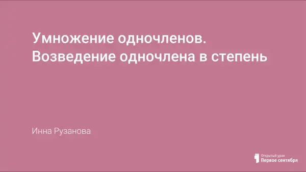 Цели урока: систематизировать и закрепить знания, умения и навыки учащихся по теме «Умножение одночленов; возведение одночлена в степень»; отрабатывать произношение математической терминологии.