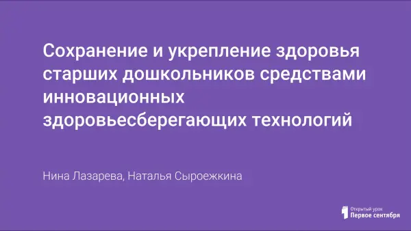 Сохранение и укрепление здоровья старших дошкольников средствами инновационных здоровьесберегающих технологий