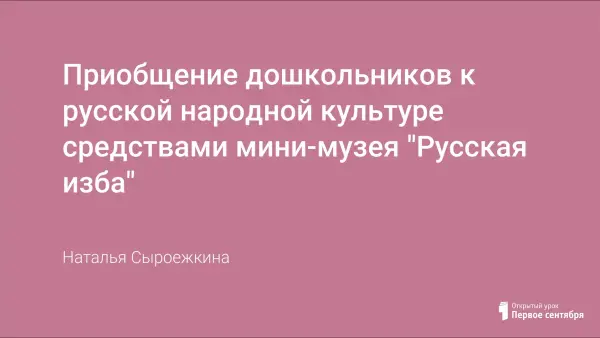 Цель: введение дошкольников в особый, самобытный мир народной культуры путём его действенного познания. Задачи: учить ребёнка видеть историко-культурный контекст окружающих вещей, т.е. оценивать его с точки зрения развития истории русской народной культуры; формировать начальное чувство Родины - правильное отношение к обществу, людям, труду, своим обязанностям; развивать способность и потребность самостоятельно осваивать окружающий мир путём изучения культурного наследия разных эпох.