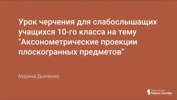 Урок продолжает знакомить учащихся с аксонометрическими проекциями плоскогранных предметов, дает представление о профессиях, в которых необходимо умение строить аксонометрические проекции. Во время урока дети обучаются самостоятельно выполнять аксонометрические проекции по чертежу и модели детали.