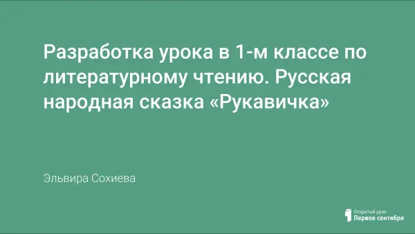 Цель урока: познакомить обучающихся с русской народной сказкой «Рукавичка».