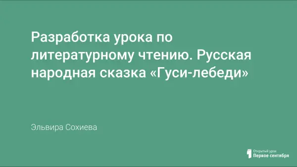 Цель урока: ознакомить детей с новым видом сказок на примере русской народной сказки «Гуси-лебеди».