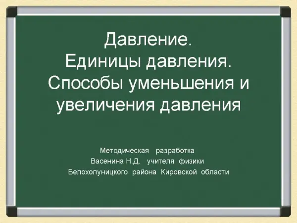 Давление. Единицы давления. Способы увеличения и уменьшения давления