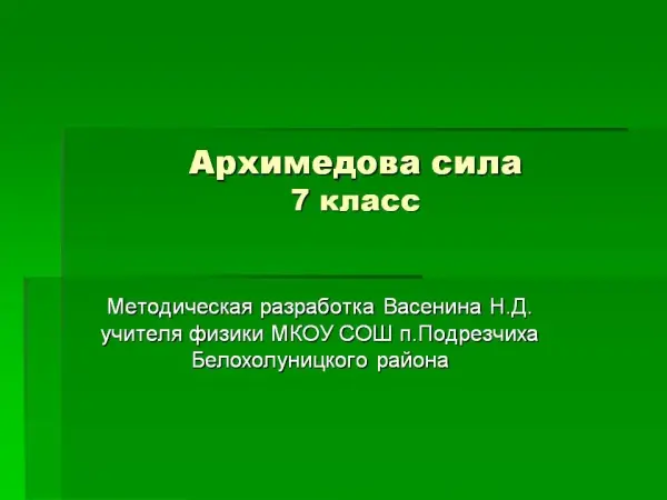"Действие жидкости и газа на погруженное в них тело. Архимедова сила". 7-й класс
