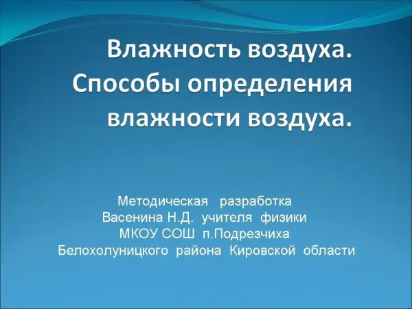 Влажность воздуха. Способы определения влажности воздуха. 8-й класс