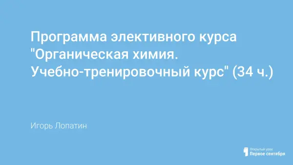 Предлагаемая программа предназначена для учащихся средней школы, изучающих химию на базовом уровне. Программа рассчитана на 34 часа (1 ч в неделю). В работе используется УМК Рудзитиса Г.Е., Фельдмана Ф.Г. Данный элективный курс призван развивать интерес обучающихся к химии, систематизировать и углубить знания учащихся по органической химии, способствовать успешной подготовке старшеклассников к итоговой аттестации по химии.
