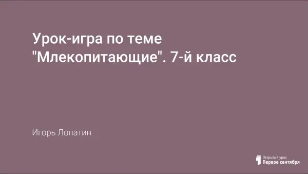 Урок проводится в форме урока-игры после изучения животных класса Млекопитающие. На уроке происходит обобщение и систематизация знаний учащихся по многообразию млекопитающих и их характерным особенностям; выбранная структура урока, использование различных занимательных и интересных вопросов и заданий способствуют развитию знаний о взаимосвязи организмов с окружающей средой и поддержанию интереса к изучению предмета.