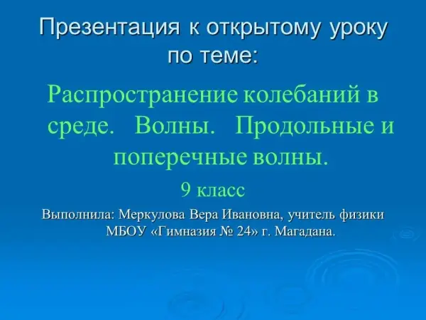 Цели урока: познакомить учащихся с механизмом образования волны, основным свойством бегущих волн; сформулировать определение механических волн; сформировать понятие продольной и поперечной волны.