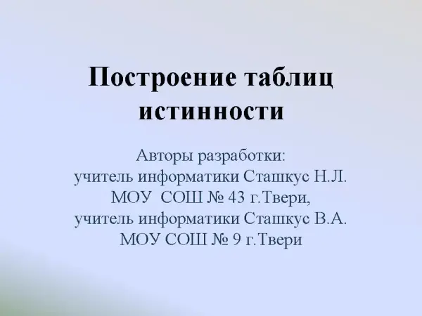 Урок информатики по теме "Построение таблиц истинности". 9-й класс