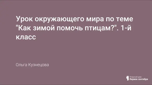 Урок знакомит учащихся с разнообразием зимующих птиц, их отличительными особенностями, условиями жизни в зимнее время года, правилами безопасного использования разных материалов и инструментов при изготовлении кормушек.
