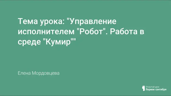 На уроке автор расширяет представления учащихся об исполнителях алгоритмов. Ученики закрепляют представление об алгоритме как модели деятельности исполнителя. формируют навыки записи, исполнения и отладки алгоритмов с командой Робота в среде "Кумир".
