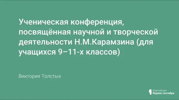 Ученическая конференция, посвящённая научной и творческой деятельности Н.М.Карамзина (для учащихся 9–11-х классов)