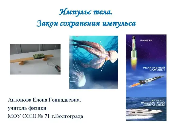 На уроке вводится понятие «импульс тела» в соответствии с планом изучения физической величины, выводится второй закон Ньютона в импульсной форме, разбирается графическая интерпретация второго закона Ньютона, изучается закон сохранения импульса и границы его применения. В ходе урока дается алгоритм решения задач на закон сохранения импульса.