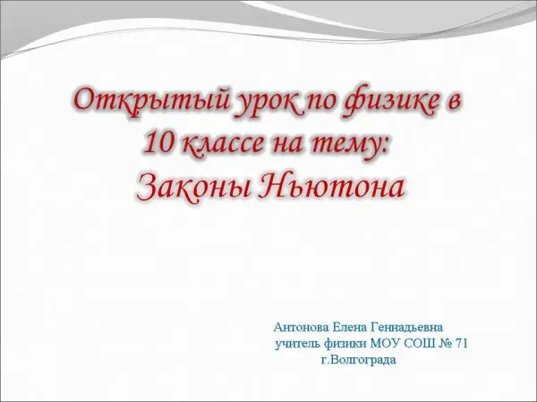 "Законы Ньютона". 10-й класс
