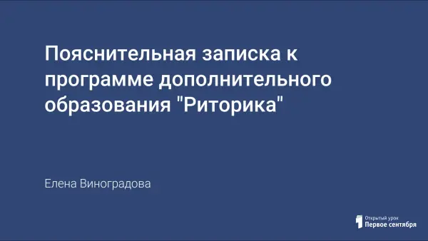 В центре современной риторики – обучение эффективному общению, которое предполагает следование нормам литературного языка и умение так строить тексты различной функциональной направленности, чтобы они максимально решали поставленные перед ними задачи обучения. Цель программы: речевое развитие младших школьников в процессе обучения основам риторики; воспитание межличностного общения.