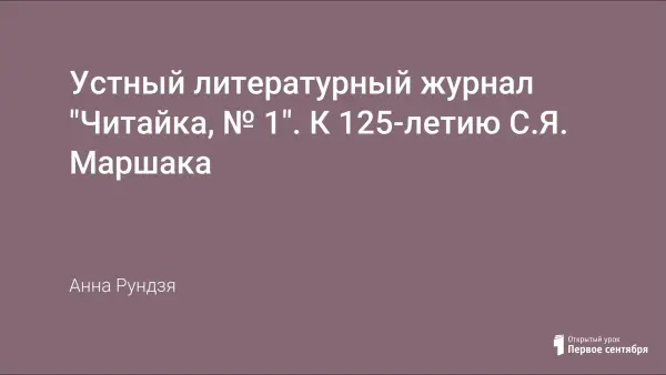 Представлен материал устного журнала, посвященный творчеству С.Я. Маршака. Обобщаются знания учащихся о творчестве детского писателя С.Я. Маршака на основе прочитанных произведений (стихотворений, пьес).