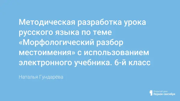 Представлена методическая разработка по теме "Морфологический разбор местоимения с использованием электронного учебника».