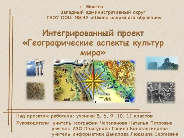 Цель проекта: дать наиболее полное представление картины мира, показать влияние природных условий на формирование культур, используя деятельностный подход в обучении. ИКТ-технологии открывают широкие возможности для оптимизации процесса обучения, делают обучение эффективным, наглядно знакомят с памятниками культуры. Школьники проводили сбор материала по теме, делали наброски и зарисовки карандашом, создавали рисунки в компьютерной графике.