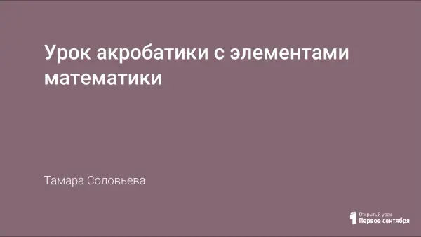 Урок сочетает в себе физические упражнения по акробатике с тренировкой математических навыков: устного счета, памяти внимания, умения решать задачи. Во время урока идет обучение стойке на лопатке, повторение кувырков вперёд и назад, повторение игры «Играем в города», а также решение задач на нахождение периметра и площади фигур, находящихся в спортивном зале.