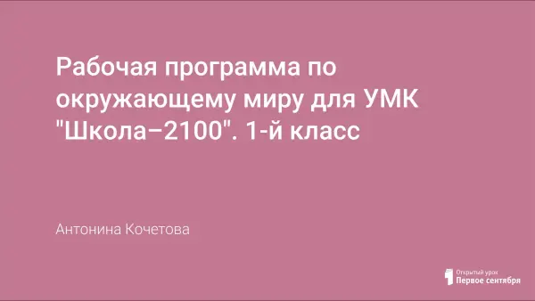 Рабочая программа разработана на основе Примерной программы по окружающему миру Федерального государственного образовательного стандарта начальной школы–2010 г. В программе определены роль и место дисциплины в едином образовательном пространстве, цель и задачи изучения курса "Окружающий мир" в 1-м классе. Сформулированы требования к уровню подготовки обучающихся, характеристика формируемых универсальных учебных действий.