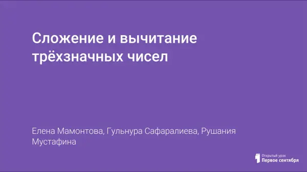 Цель работы: создать условия для открытия детьми приёма устного и письменного сложения и вычитания трёхзначных чисел; способствование для усвоения алгоритма и умению применять его, умения решать текстовые задачи.