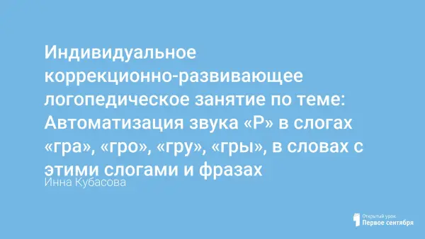 Цель занятия: сформировать навык правильного произношения звука «Р». Задачи: автоматизировать навык правильного произношения звука «Р» изолированно, в слогах «гра», «гро», «гру», «гры», в словах с этими слогами и фразах; стимулировать мозговую деятельность ребёнка посредством развития мелкой моторики рук, развивать артикуляционную моторику; закреплять навык согласования имен существительных с числительными, закреплять навык употребления предлогов «на», «со» во фразовой речи.