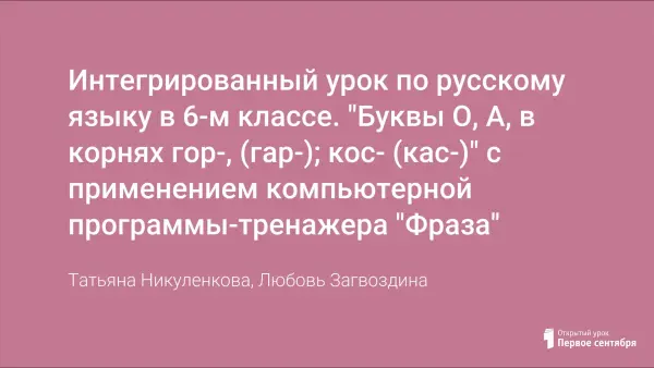 Интегрированный урок по русскому языку в 6-м классе. "Буквы О, А, в корнях гор-, (гар-); кос- (кас-)" с применением компьютерной программы-тренажера "Фраза"