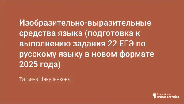 Цели урока: обобщить знания об изобразительно-выразительных средствах русского языка; изучить основные требования к выполнению задания 22 и внесенные изменения, определить уровень сложности задания согласно Демоверсии ЕГЭ 2025 года; определить круг изобразительно-выразительных средств, необходимых для выполнения этого задания в новом формате.