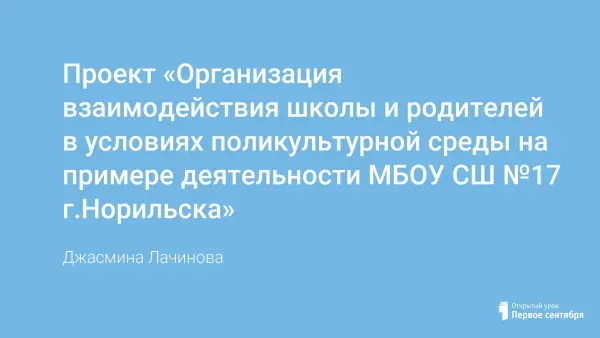 Процесс миграции в Россию последние годы растет. В связи с этим во многих регионах нашего государства в классах общеобразовательных школ учатся дети разных национальностей, их значительную часть составляют представители из стран ближнего зарубежья. Данное положение позволило сформулировать цель работы: разработка модели организации взаимодействия с родителями обучающихся в условиях поликультурной среды на примере деятельности МБОУ СШ №17 г. Норильска.