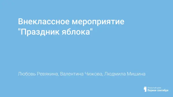 Внеклассное мероприятие рассчитано на учащихся младших классов. В этом году в нашей местности небывалый урожай яблок. В начальных классах был проведен «Яблочный фестиваль», который закончился «Праздником яблок».