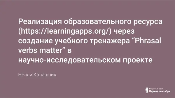 Статья посвящена решению проблемы, связанной с низким уровнем освоения и использования в речи фразовых глаголов школьниками. Автор делится опытом работы по созданию учебного тренажера “Phrasal verbs matter” в научно исследовательском проекте, предметом исследования которого является категория качества освоения фразовых глаголов. Цель проекта: выявление влияния цифрового продукта - учебного тренажера на качество освоения фразовых глаголов.
