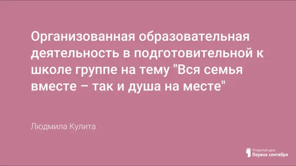 Цель занятия: создание условий для закрепления представлений о семье. Задачи: формировать представление о семье как о людях, которые живут вместе; совершенствовать диалогическую форму речи детей; упражнять в умении связно и последовательно рассказывать о своей семье; развивать чувство гордости за свою семью; воспитывать желание заботиться о близких.
