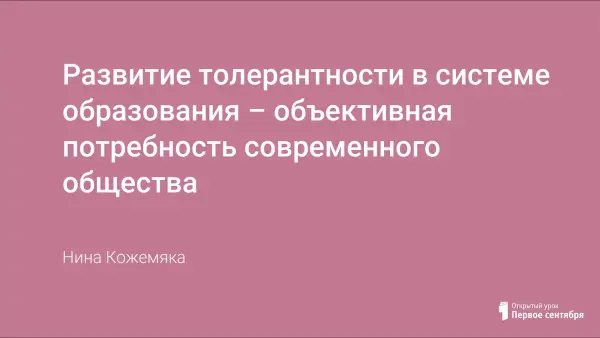 Цель занятия: формирование у школьников опыта толерантных отношений и поведения; осваивание и внедрение новых технологий по развитию толерантности в образовательном процессе; профилактика интолерантного поведения в среде учащихся, приобщение к общечеловеческим ценностям; формирование и внедрение социальных норм толерантности.