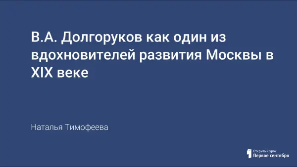 Цель урока: показать эволюцию города Москвы и её становление как одного из важнейших городов Российской империи в период правления генерал-губернатора В.А. Долгорукова.