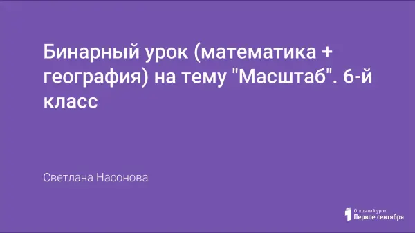 Урок в 6-м классе основан на практических задачах, связанных с вычислением масштаба. Направлен на формирование представлений о математике как методе познания действительности; призван научить предметными средствами математики отвечать на те вопросы, которые предлагает сама жизнь. Решение задач основано на работе со схемами, таблицами и картами. Урок может быть дан в рамках темы «Отношения и прогрессии».