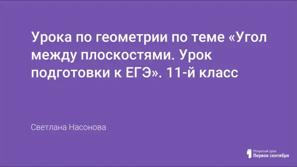 Данный урок является одним из уроков, отведенных в 11-м классе на повторение курса геометрии за 7–11-е классы. Цели урока: повторить определение угла между плоскостями; повторить изученный ранее материал, необходимый при решении задач; рассмотреть решение задачи профильного уровня ЕГЭ; вырабатывать навыки и умения решения задач на нахождение угла между плоскостями.