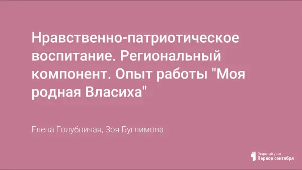Нравственно-патриотическое воспитание. Региональный компонент. Опыт работы "Моя родная Власиха"