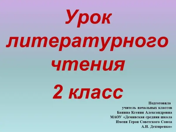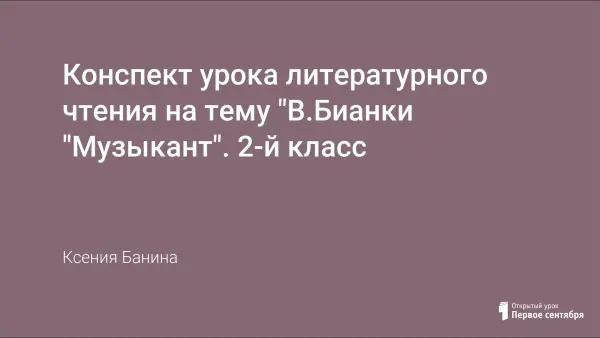 Конспект урока составлен с использованием приемов формирования смыслового чтения при работе с текстом, а также с учетом учащихся с ОВЗ. Цель урока: познакомить учащихся с рассказом В.В.Бианки «Музыкант»; развивать речь, мышление, интерес к изучению природы; воспитывать любовь и бережное отношение к животным.