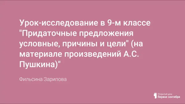 Данный урок входит в систему уроков по изучению сложноподчиненных предложений, а также преследует следующие цели: формировать умение определять структуру сложноподчиненных предложений с придаточными условными, причины и цели, стилистические особенности союзов, связывающих придаточные с главными; способствовать эстетическому воспитанию; прививать любовь к творчеству А.С. Пушкина.
