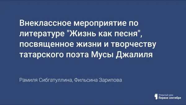 Внеклассное мероприятие по литературе "Жизнь как песня", посвященное жизни и творчеству татарского поэта Мусы Джалиля