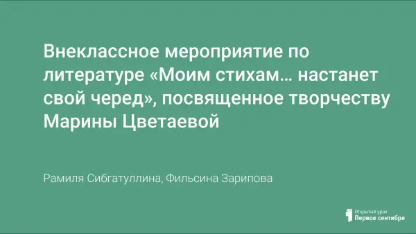 Внеклассное мероприятие по литературе «Моим стихам… настанет свой черед», посвященное творчеству Марины Цветаевой