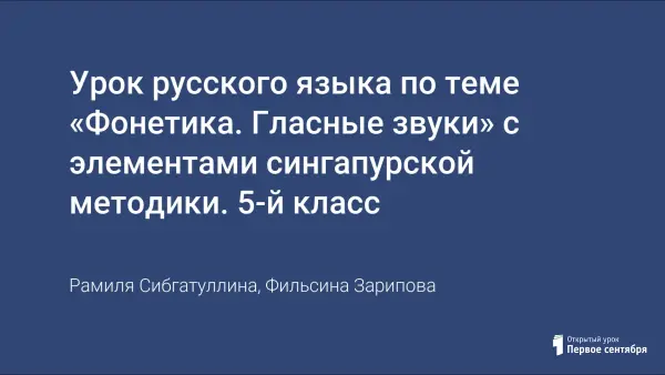Урок русского языка по теме «Фонетика. Гласные звуки» с элементами сингапурской методики. 5-й класс