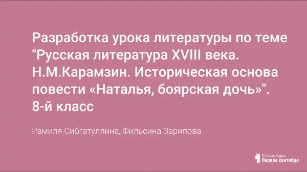 Разработка урока литературы по теме "Русская литература XVIII века. Н.М.Карамзин. Историческая основа повести «Наталья, боярская дочь»". 8-й класс
