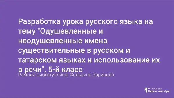 Разработка урока русского языка на тему "Одушевленные и неодушевленные имена существительные в русском и татарском языках и использование их в речи". 5-й класс