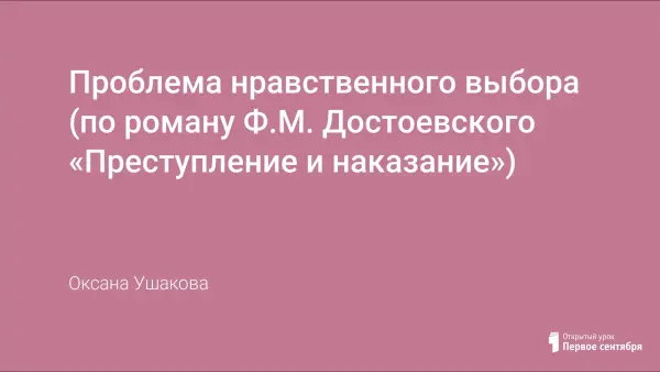 Представлена презентация по роману Ф.М.Достоевского «Преступление и наказание». Обсуждается проблема нравственного выбора главного героя.