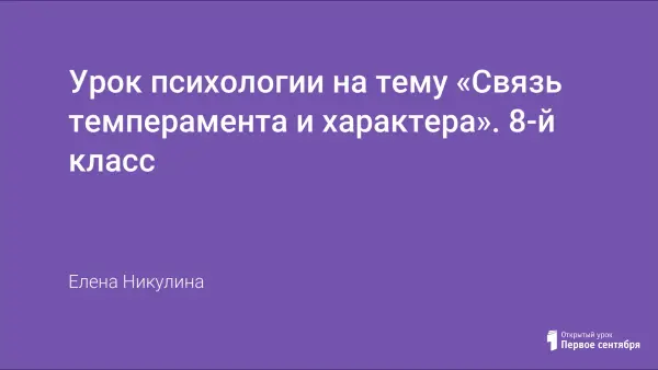 Предлагаемая тема дает возможность педагогу-психологу, учителю или классному руководителю обсудить с ребятами особенности темперамента и характера, помогает учащимся осознать свои сильные и слабые стороны и наметить способы самосовершенствования. Урок можно провести как внеклассное или внеурочное мероприятие, для того, чтобы раскрыть возможности и индивидуальные особенности ребенка. Классный руководитель сможет больше узнать о ребятах своего класса.