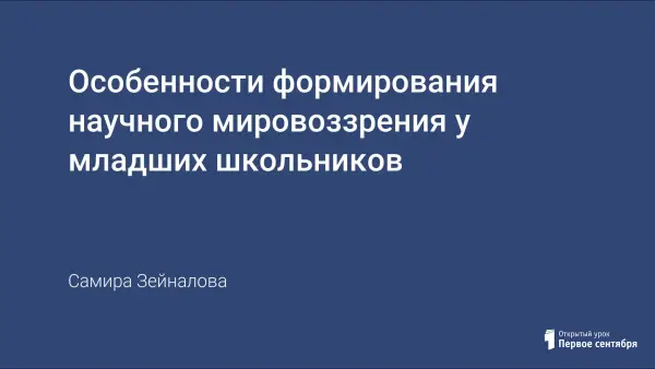 Научное мировоззрение учеников, формируется на протяжении всего школьного курса, так как учащиеся переходя из класса в класс, все полнее познают реальный мир, и в связи с тем, что все более многосторонней и яркой становится его учебная деятельность и общественно полезный труд. В младших классах ученикам даются элементы научного миропонимания, закладывается основы реалистических взглядов на явления природы и общественной жизни в соответствии с перспективой развития у них целостного мировоззрения.