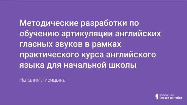 Задача урока: разработка серии уроков обучения артикуляции английских гласных. Цель: аппроксимированное произношение учениками гласных звуков.